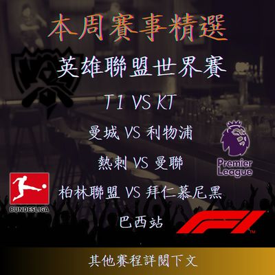 LOL世界賽 X 英超 X 德甲 X 西甲 X F1