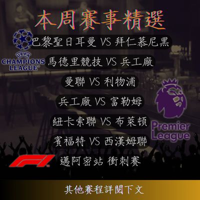 歐冠 X 英超 X 德甲 X F1 X 中職